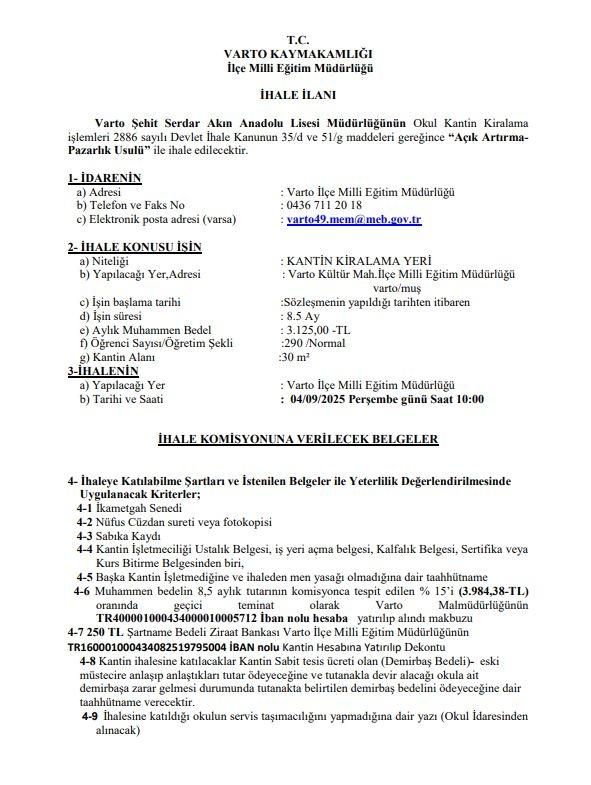 MUŞ VARTO İLÇE MİLLÎ EĞİTİM MÜDÜRLÜĞÜ